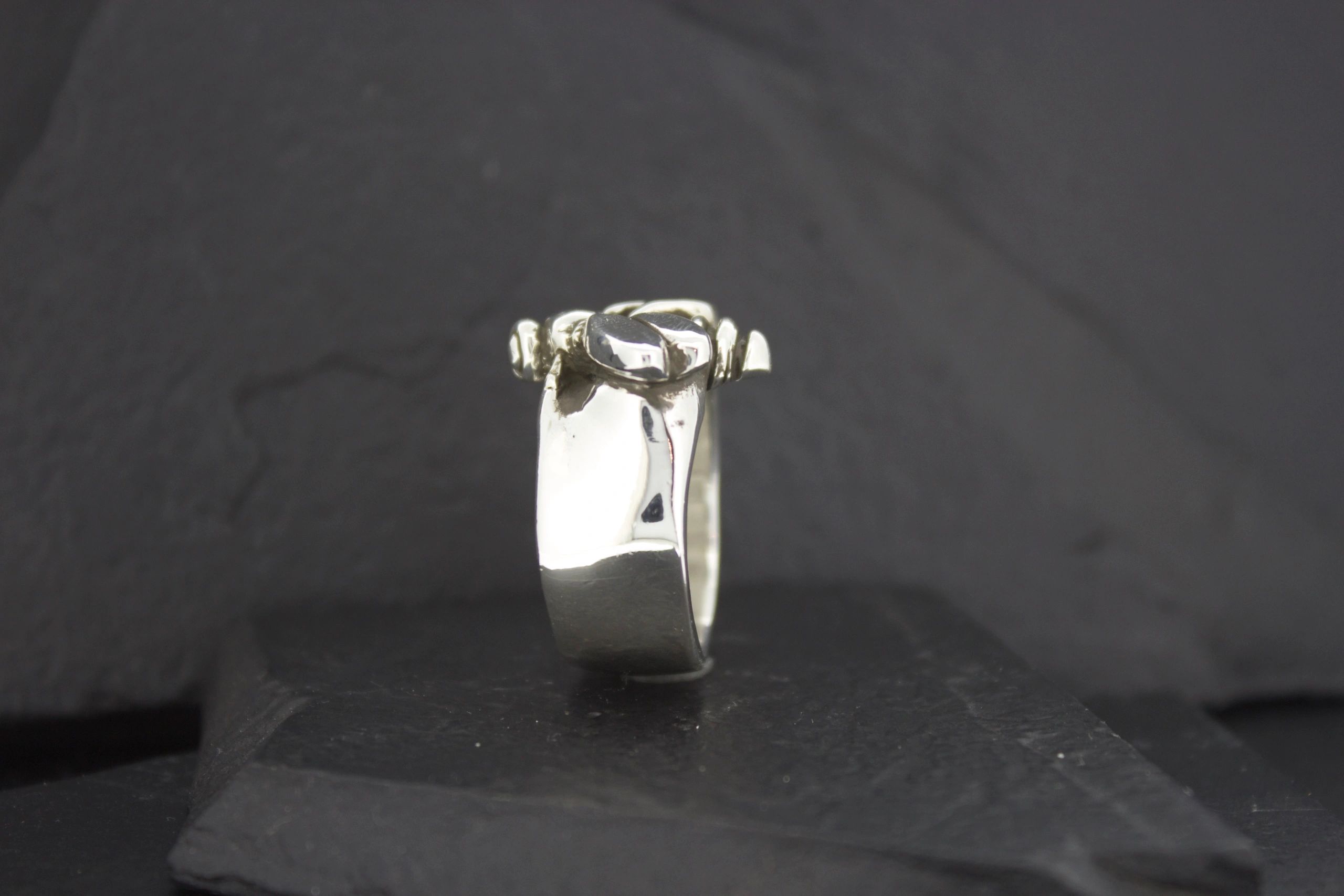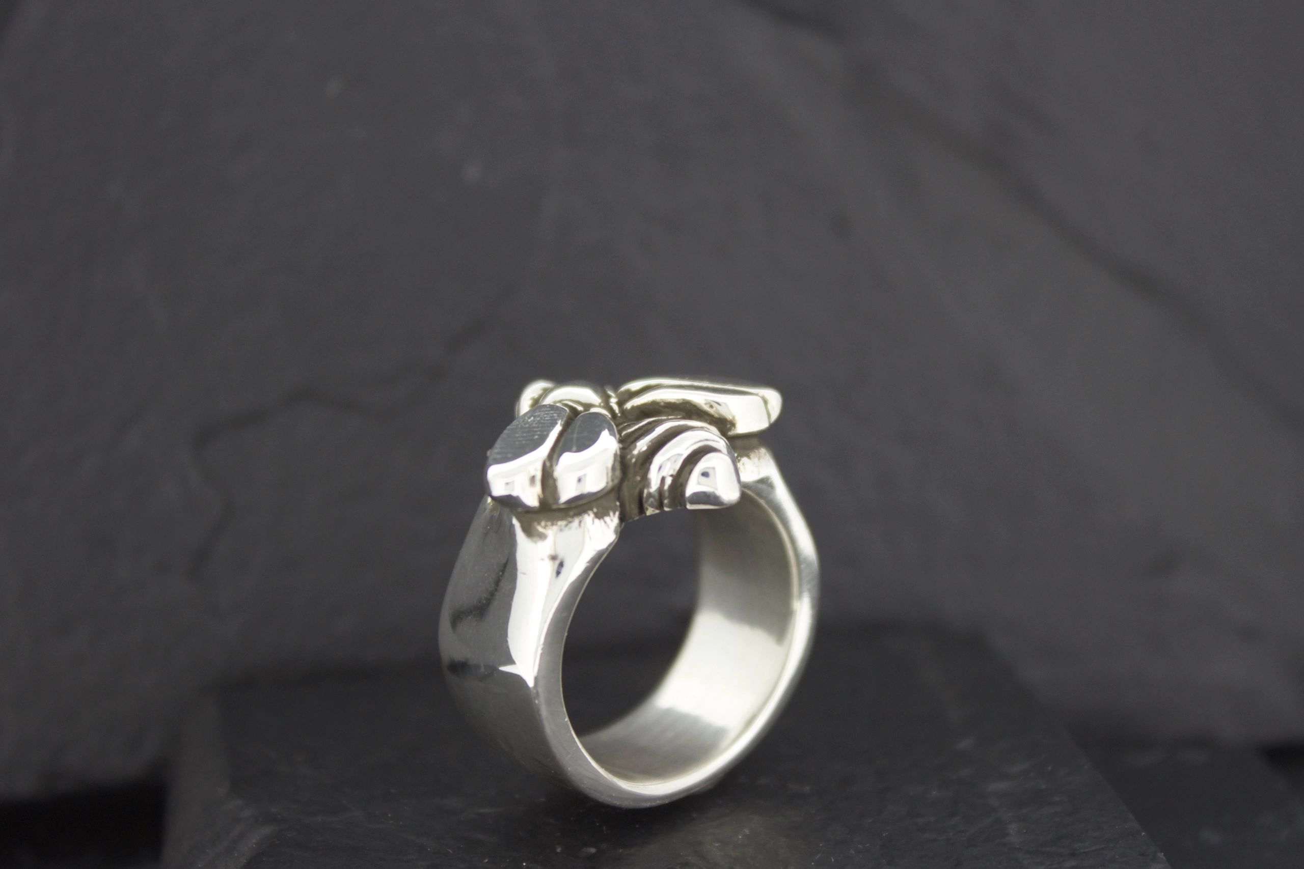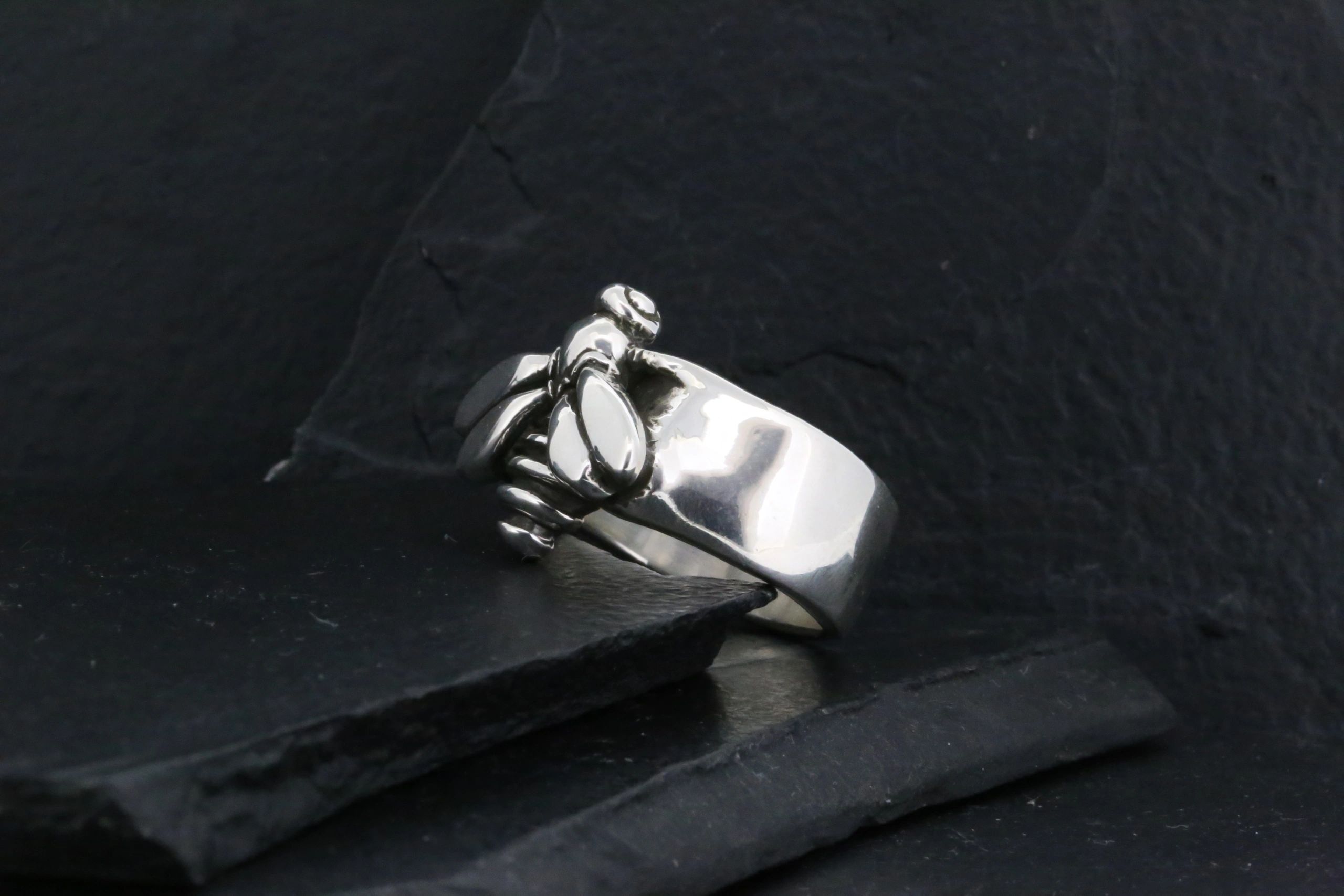 *Measures approximately 3/4  inch top to bottom*All rings are handmade in the USA in NICKEL FREE Sterling Silver. *All rings are made to order and generally take about 2 to 3 weeks. *All rings are also available in 10K, 14K, or 18K yellow, white or rose gold, platinum and palladium. Prices available upon request.*Stones and engraving can be added to most rings.  Prices available upon request