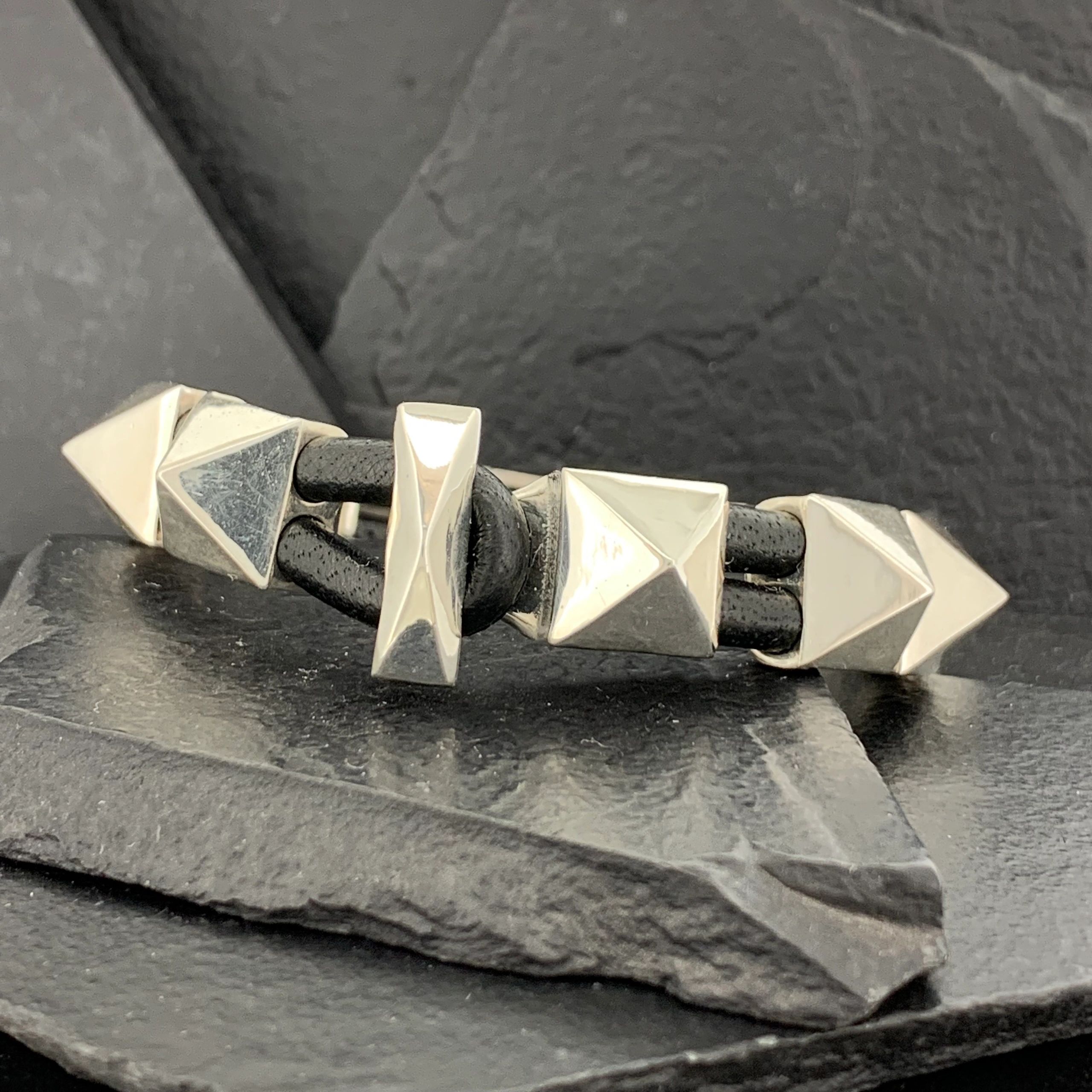 LARGE PLAIN SPIKE BRACELET ON LEATHER