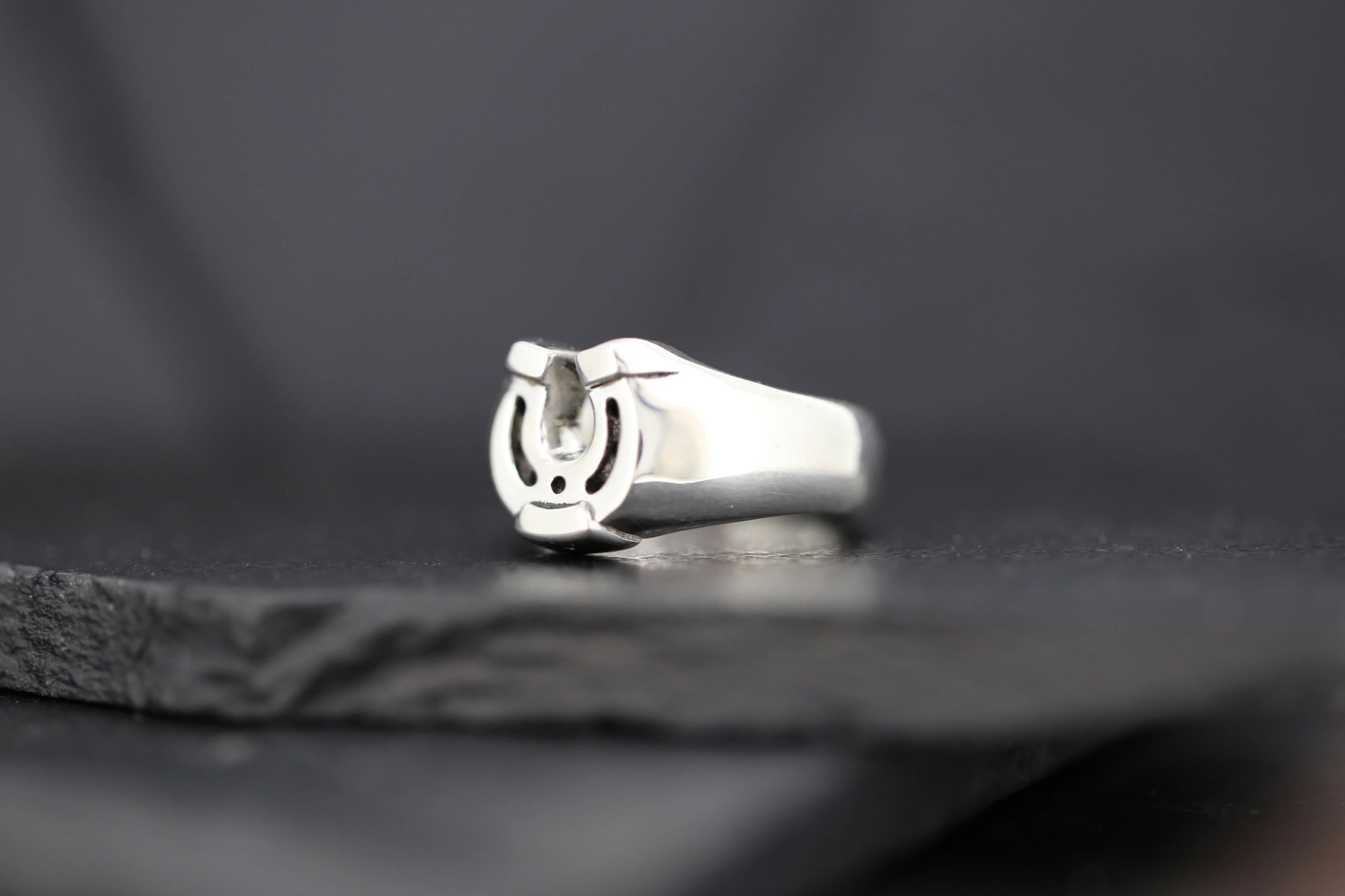*Measures approximately 1/2 inch top to bottom *All rings are handmade in the USA in NICKEL FREE Sterling Silver.  *All rings are made to order and generally take about 2 to 3 weeks.  *All rings are also available in 10K, 14K, or 18K yellow, white or rose gold, platinum and  palladium . Prices available upon request. *Stones and engraving can be added to most rings.    Prices available upon request.