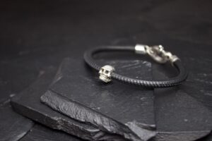 LEATHER WRAP LARGE SKULL BEAD BRACELET QUATRO