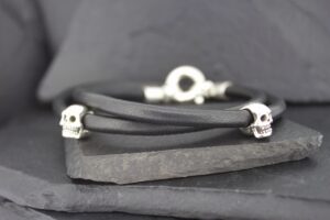 LEATHER WRAP SMALL SKULL BEAD BRACELET DOUBLE