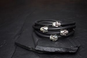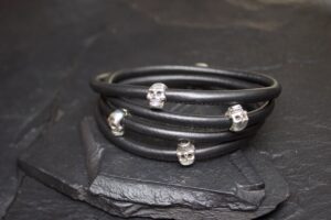 LEATHER WRAP SMALL SKULL BEAD BRACELET QUATRO