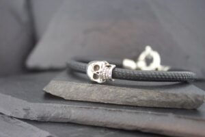 LEATHER WRAP SMALL SKULL BEAD BRACELET SINGLE