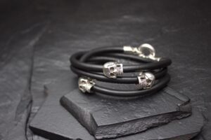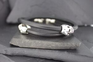 LEATHER WRAP LARGE SKULL BEAD BRACELET DOUBLE