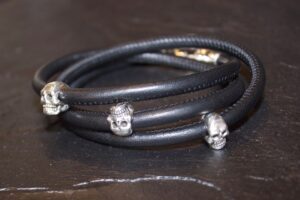 LEATHER WRAP SMALL SKULL BEAD BRACELET TRIPLE