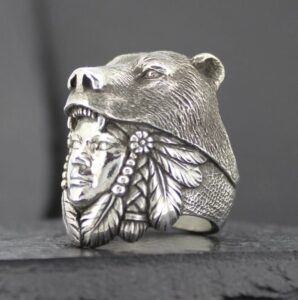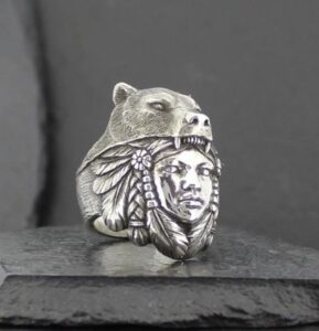NATIVE AMERICAN WOMAN WEARING BEAR HEADDRESS