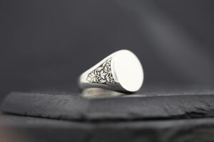 SMALL OVAL SIGNET RING WITH SCROLLWORK ENGRAVING